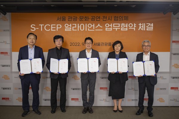 이들 기관은 13일 청계천 서울관광플라자에서 서울 관광·문화·공연·전시 협의체 ‘S-TCEP 얼라이언스’ 업무협약(MOU)을 맺었다. ‘S-TCEP’은 ‘Seoul-Tourism, Culture, Exhibitions, Performing Arts’의 약자로 서울의 관광·문화·공연·전시 분야에서의 협의체를 의미한다.