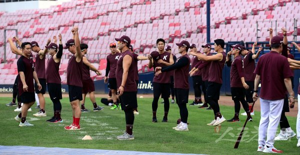 14일 광주 KIA챔피언스필드에서 ‘2022 신한은행 SOL KBO리그’ KIA 타이거즈와 키움 히어로즈의 경기가 열린다. 경기 전 키움 선수들이 스트레칭 훈련을 하고 있다.