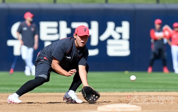 14일 광주 KIA챔피언스필드에서 ‘2022 신한은행 SOL KBO리그’ KIA 타이거즈와 키움 히어로즈의 경기가 열린다. 경기 전 KIA 김도영이 수비 훈련을 펼치고 있다.