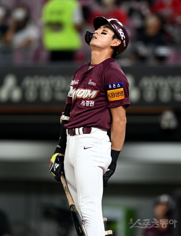 14일 광주 KIA챔피언스필드에서 ‘2022 신한은행 SOL KBO리그’ KIA 타이거즈와 키움 히어로즈의 경기가 열렸다. 4회초 1사에서 키움 이정후가 파울플라이 아웃으로 물러나며 아쉬워하고 있다.