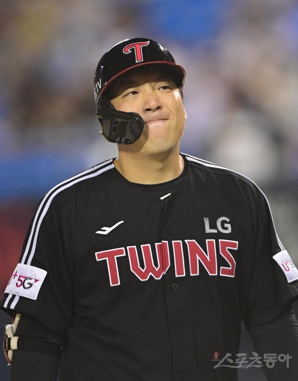 14일 서울 잠실야구장에서 열린 ‘2022 신한은행 SOL KBO리그’ 두산 베어스와 LG 트윈스의 경기에서 4회초 무사 1루 LG 김현수가 중견수 뜬공으로 아웃된 후 아쉬워하고 있다.