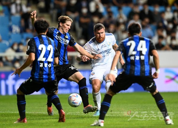 14일 인천축구전용경기장에서 열린 프로축구 ‘하나원큐 K리그1 2022’ 인천 유나이티드와 울산 현대 경기에서 울산 마틴 아담이 슛팅을 날리고 있다.