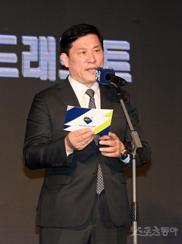 15일 서울 중구 웨스틴 조선호텔에서 열린 ‘2023 KBO 신인 드래프트’에서 허구연 KBO 총재가 인사말을 하고 있다.