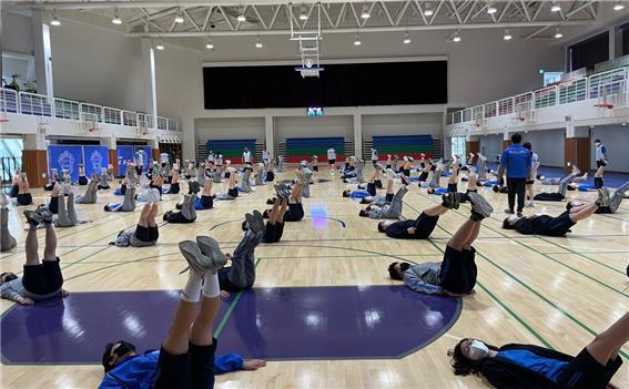 충남삼성고 학생들이 체육관에서 모닝스파크 프로그램의 하나인 기초체력 훈련을 하고 있다. 사진출처 | 충남삼성고