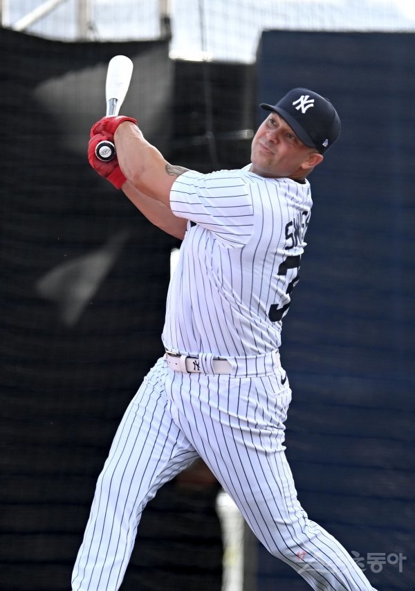 미국 프로야구 메이저리그 베이스볼(MLB)이 주최하는 ‘FTX MLB 홈런더비X 서울’이 17일 인천 파라다이스시티 호텔 컬처파크에서 개최됐다. 뉴욕양키스 닉 스위셔가 타격을 하고 있다.