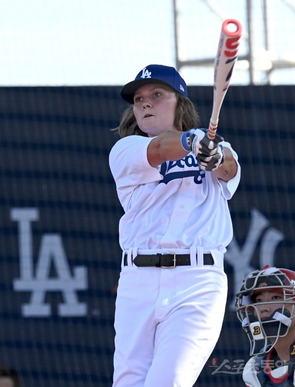 미국 프로야구 메이저리그 베이스볼(MLB)이 주최하는 ‘FTX MLB 홈런더비X 서울’이 17일 인천 파라다이스시티 호텔 컬처파크에서 개최됐다. LA 다저스 애쉬튼 랜스델이 타격을 하고 있다.