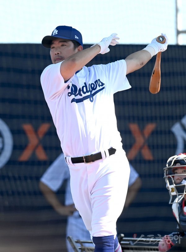 미국 프로야구 메이저리그 베이스볼(MLB)이 주최하는 ‘FTX MLB 홈런더비X 서울’이 17일 인천 파라다이스시티 호텔 컬처파크에서 개최됐다. LA 다저스 정근우가 타격을 하고 있다.