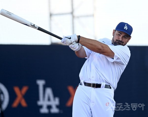 미국 프로야구 메이저리그 베이스볼(MLB)이 주최하는 ‘FTX MLB 홈런더비X 서울’이 17일 인천 파라다이스시티 호텔 컬처파크에서 개최됐다. 결승전에서 LA 다저스 아드리안 곤잘레스가 타격을 하고 있다.