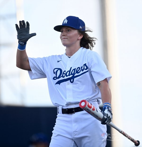 미국 프로야구 메이저리그 베이스볼(MLB)이 주최하는 ‘FTX MLB 홈런더비X 서울’이 17일 인천 파라다이스시티 호텔 컬처파크에서 개최됐다. 결승전에서 LA 다저스애쉬튼 랜스델이 타격을 마친 후 하이파이브 하고 있다.