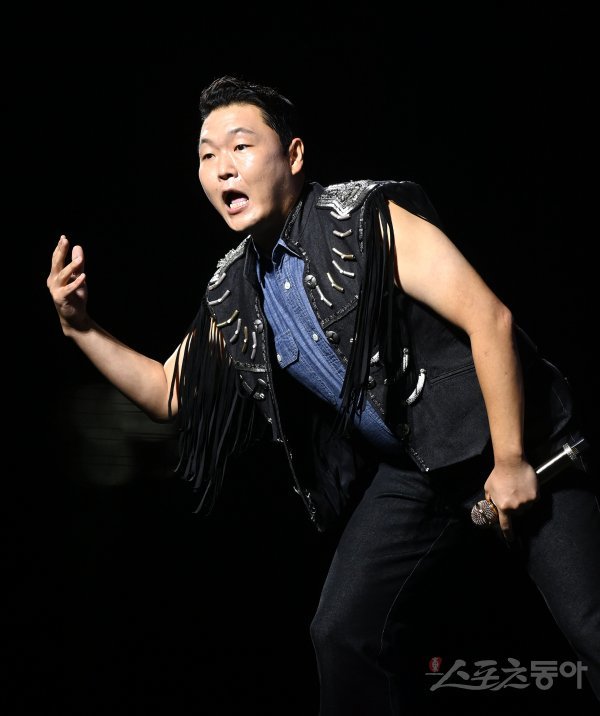 미국 프로야구 메이저리그 베이스볼(MLB)이 주최하는 ‘FTX MLB 홈런더비X 서울’이 17일 인천 파라다이스시티 호텔 컬처파크에서 개최됐다. 가수 싸이가 축하공연을 하고 있다.