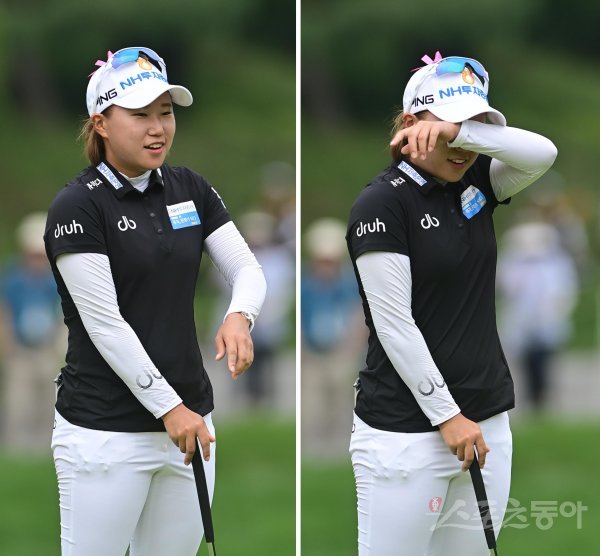 18일 경기 블랙스톤CC 이천에서 열린 KLPGA 투어 ‘KB금융 스타챔피언십’ 4라운드 9번홀에서 버디 퍼트를 놓친 정윤지가 아쉬워하고 있다.