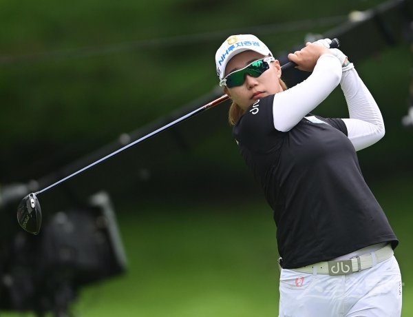 18일 경기 블랙스톤CC 이천에서 열린 KLPGA 투어 ‘KB금융 스타챔피언십’ 4라운드 10번홀에서 정윤지가 티샷을 하고 있다.