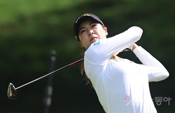 18일 경기 블랙스톤CC 이천에서 열린 KLPGA 투어 ‘KB금융 스타챔피언십’ 4라운드 10번홀에서 전인지가 티샷을 하고 있다.