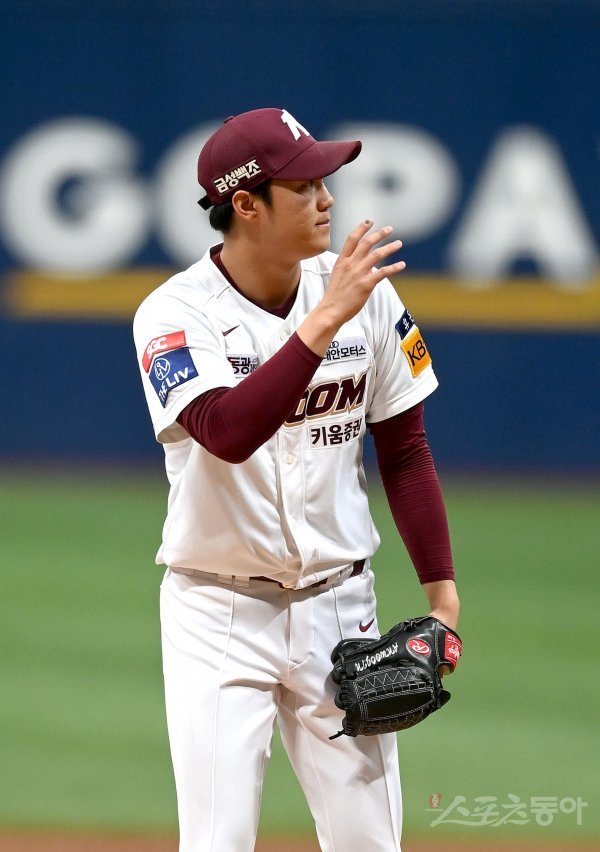 18일 서울 고척스카이돔에서 ‘2022 신한은행 MY CAR KBO리그’ NC 다이노스와 키움 히어로즈 경기가 열렸다. 선발 투수로 등판한 키움 안우진이 2회초 1사 NC 노진혁을 삼진 아웃시키며 200 탈삼진을 기록한 후 팬들에게 인사하고 있다.