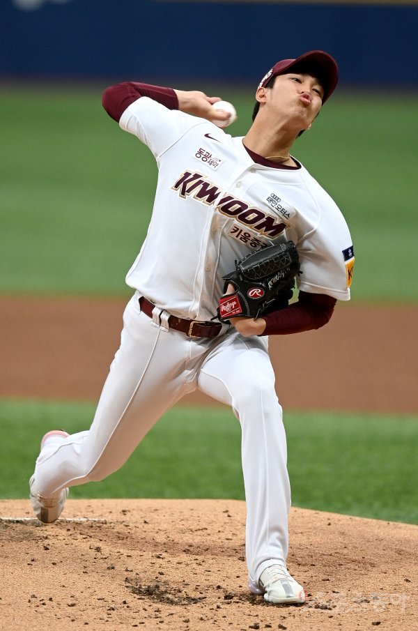 18일 서울 고척스카이돔에서 ‘2022 신한은행 MY CAR KBO리그’ NC 다이노스와 키움 히어로즈 경기가 열렸다. 선발 투수로 등판한 키움 안우진이 2회초 1사 NC 노진혁을 삼진 아웃시키며 200 탈삼진을 기록하고 있다.