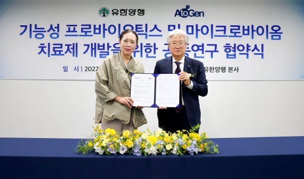 양사는 앞으로 기능성 프로바이오틱스를 활용한 건강기능식품 분야와 마이크로바이옴치료제 분야에서 공동 연구개발을 진행하기로 협약했다. 에이투젠은 독자적인 개발 플랫폼을 바탕으로 대사성질환, 면역질환, 근육질환 등 다양한 질병에 대한 마이크로바이옴 치료제를 개발하고 있다. 건강기능식품 프로바이오틱스 소재 개발에서도 국내 최고 수준의 연구개발 역량을 보유하고 있다.