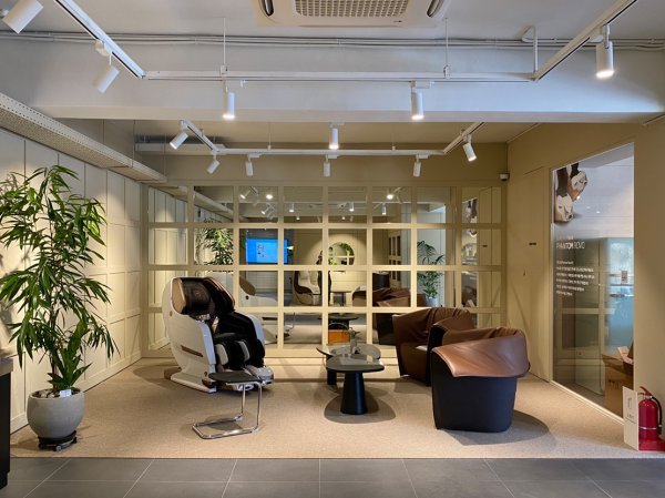 고객을 맞이하는 웰컴 공간과 상담존으로 구성한 1층, 안마의자 체험 공간을 배치한 2층, 이탈리아 천연 라텍스 매트리스 ‘라클라우드’ 전용 체험 공간인 3층 등 층별로 다양한 콘셉트로 꾸몄다. 특히 음향·영상을 함께 즐길 수 있는 미디어존을 비롯한 힐링존과 프라이빗룸 등 고객 체험을 극대화하기 위한 특색 있는 체험존이 눈에 띈다.