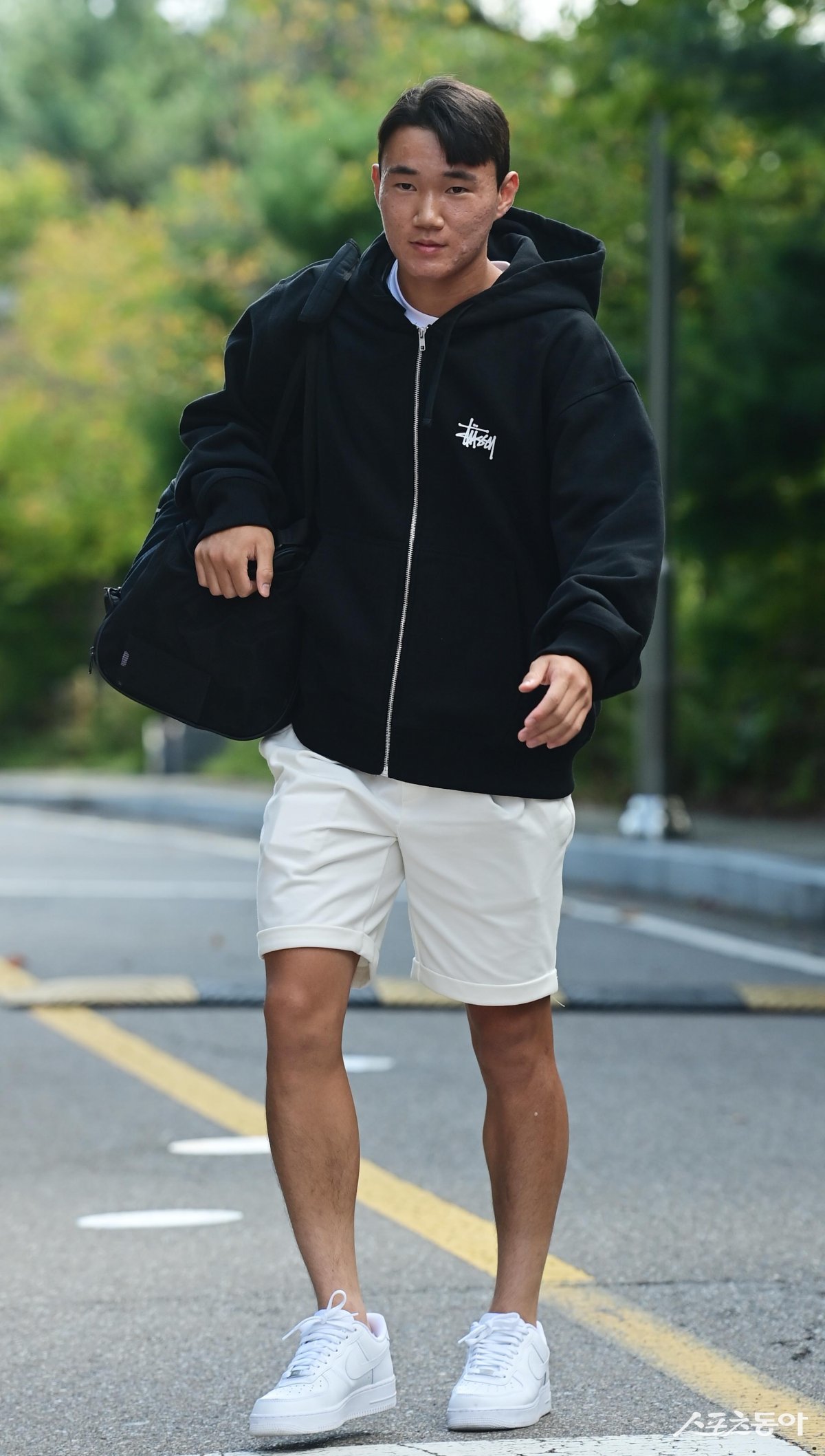 한국축구대표팀이 19일 경기도 파주 축구대표팀트레이닝센터(NFC)에서 코스타리카, 카메룬과 친선경기에 앞서 소집훈련을 진행했다. 양현준이 입소하고 있다.