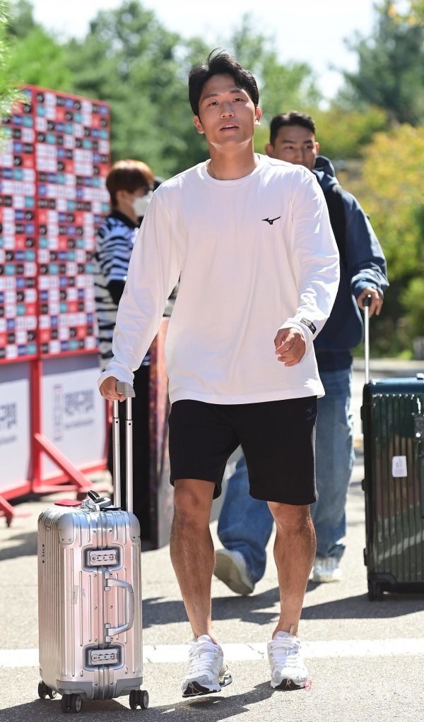 한국축구대표팀이 19일 경기도 파주 축구대표팀트레이닝센터(NFC)에서 코스타리카, 카메룬과 친선경기에 앞서 소집훈련을 진행했다. 나상호가 입소하고 있다.