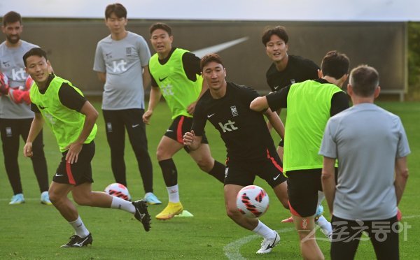한국축구대표팀이 19일 경기도 파주 축구대표팀트레이닝센터(NFC)에서 코스타리카, 카메룬과 친선경기에 앞서 소집훈련을 진행했다. 선수들이 훈련을 하고 있다.