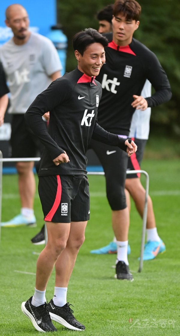 한국축구대표팀이 19일 경기도 파주 축구대표팀트레이닝센터(NFC)에서 코스타리카, 카메룬과 친선경기에 앞서 소집훈련을 진행했다. 백승호가 워밍업을 하고 있다.