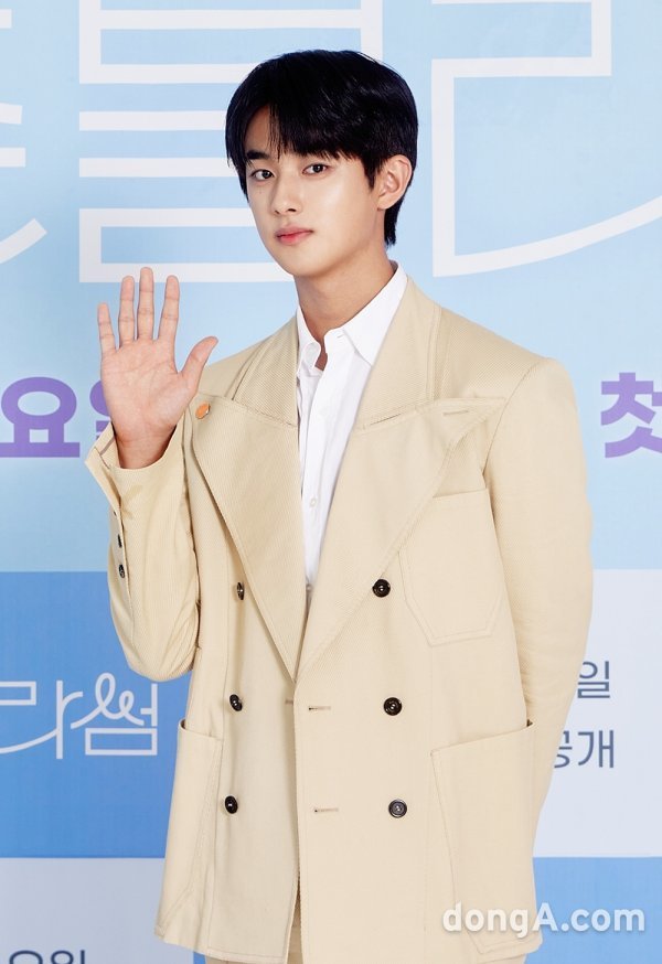 배우 김민규가 20일 오전 진행된 웨이브 오리지널 드라마 ‘청춘블라썸’ 온라인 제작발표회에서 포토타임에 임하고 있다.