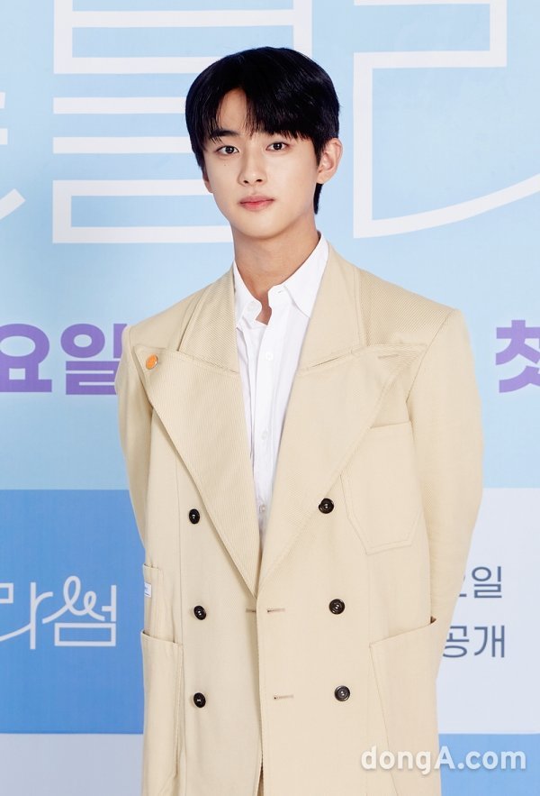 배우 김민규가 20일 오전 진행된 웨이브 오리지널 드라마 ‘청춘블라썸’ 온라인 제작발표회에서 포토타임에 임하고 있다.