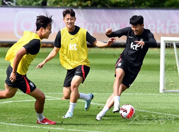 코스타리카, 카메룬과 평가전을 앞둔 한국축구국가대표팀이 20일 경기도 파주 축구대표팀트레이닝센터(NFC)에서 훈련을 가졌다. 축구대표팀 손흥민이 미니게임을 펼치고 있다.