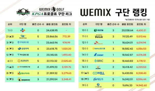 위믹스 구단 랭킹은 9월 22일부터 25일까지 펼쳐지는 ‘DGB금융그룹 오픈’ 이후 업데이트 될 예정이다.