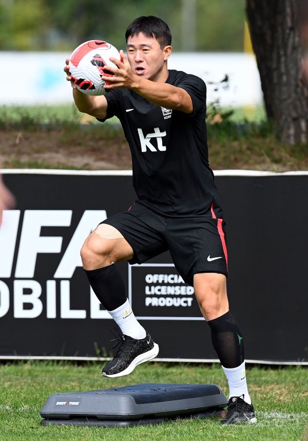 코스타리카, 카메룬과 평가전을 앞둔 한국축구국가대표팀이 20일 경기도 파주 축구대표팀트레이닝센터(NFC)에서 훈련을 가졌다. 축구대표팀 권창훈이 스트레칭 훈련을 펼치고 있다.