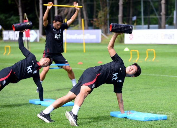 코스타리카, 카메룬과 평가전을 앞둔 한국축구국가대표팀이 20일 경기도 파주 축구대표팀트레이닝센터(NFC)에서 훈련을 가졌다. 축구대표팀 이강인이 스트레칭 훈련을 펼치고 있다.