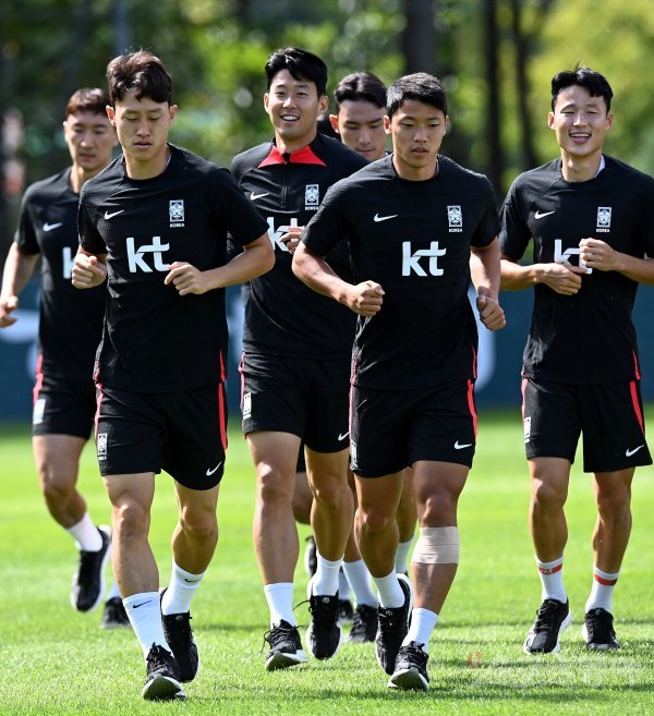 코스타리카, 카메룬과 평가전을 앞둔 한국축구국가대표팀이 20일 경기도 파주 축구대표팀트레이닝센터(NFC)에서 훈련을 가졌다. 축구대표팀 손흥민을 비롯한 선수들이 그라운드를 달리고 있다.