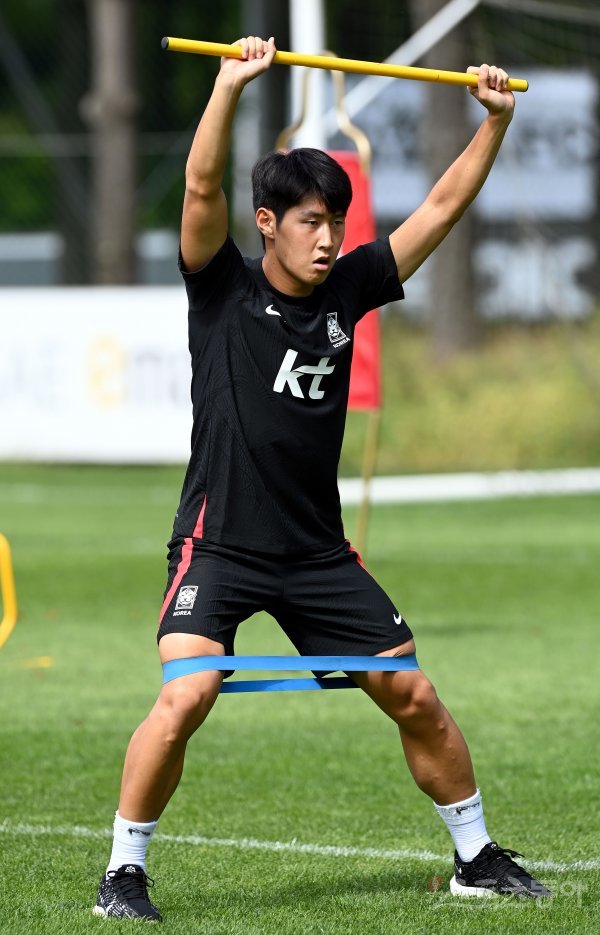 코스타리카, 카메룬과 평가전을 앞둔 한국축구국가대표팀이 20일 경기도 파주 축구대표팀트레이닝센터(NFC)에서 훈련을 가졌다. 축구대표팀 이강인이 스트레칭 훈련을 펼치고 있다.