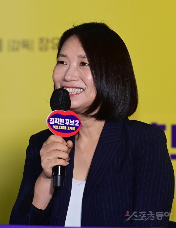 장유정 감독이 20일 서울 강남구 삼성동 메가박스 코엑스점에서 열린 영화 ‘정직한 후보2’ 언론시사회에서 인사말을 하고 있다.