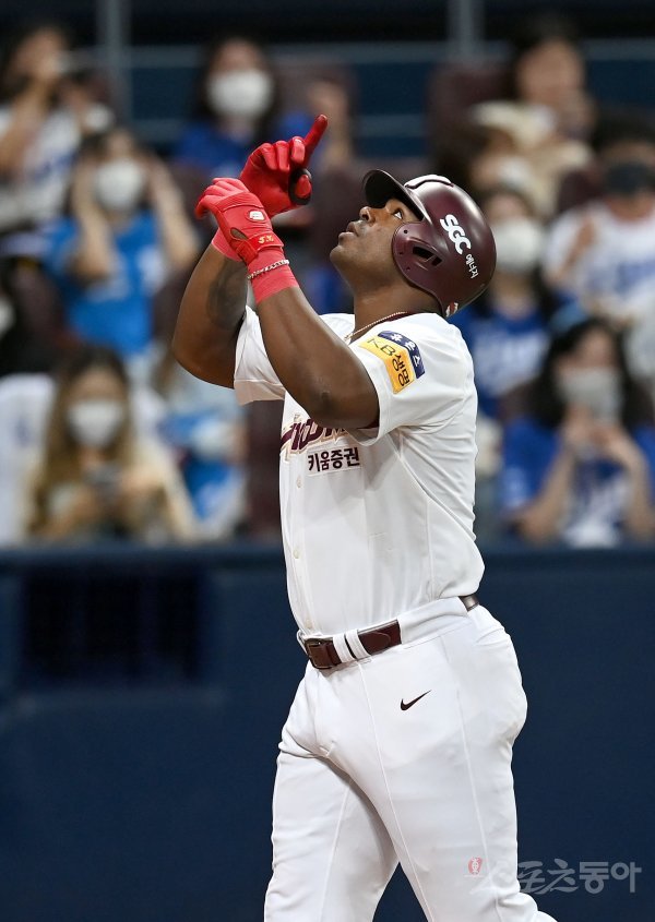 20일 서울 고척스카이돔에서 ‘2022 신한은행 MY CAR KBO리그’ 삼성 라이온즈와 키움 히어로즈 경기가 열렸다. 4회말 2사 키움 푸이그가 좌중월 솔로 홈런을 날리고 그라운드를 돌아 홈인하며 기뻐하고 있다.