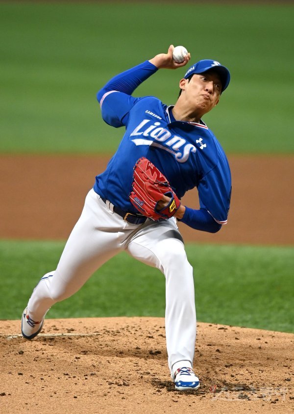 20일 서울 고척스카이돔에서 ‘2022 신한은행 MY CAR KBO리그’ 삼성 라이온즈와 키움 히어로즈 경기가 열렸다. 선발 투수로 등판한 삼성 원태인이 역투하고 있다.