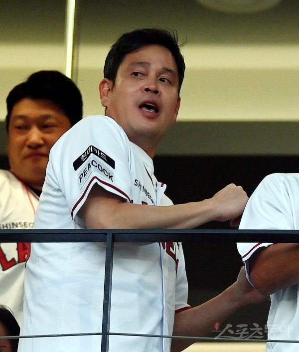 20일 인천 SSG 랜더스필드에서 ‘2022 신한은행 SOL KBO리그’ SSG 랜더스와 KT 위즈의 경기가 열렸다. 경기 전 SSG 정용진 구단주가 관중석에서 경기를 지켜보고 있다.