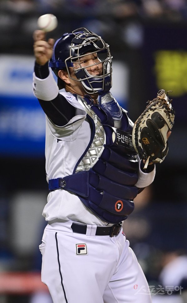 20일 서울 잠실야구장에서 열린 ‘2022 신한은행 SOL KBO리그’ 두산 베어스와 NC 다이노스의 경기에서 선발 라인업에 이름을 올린 박세혁을 대신해 2회초 두산 장승현이 교체됐다.