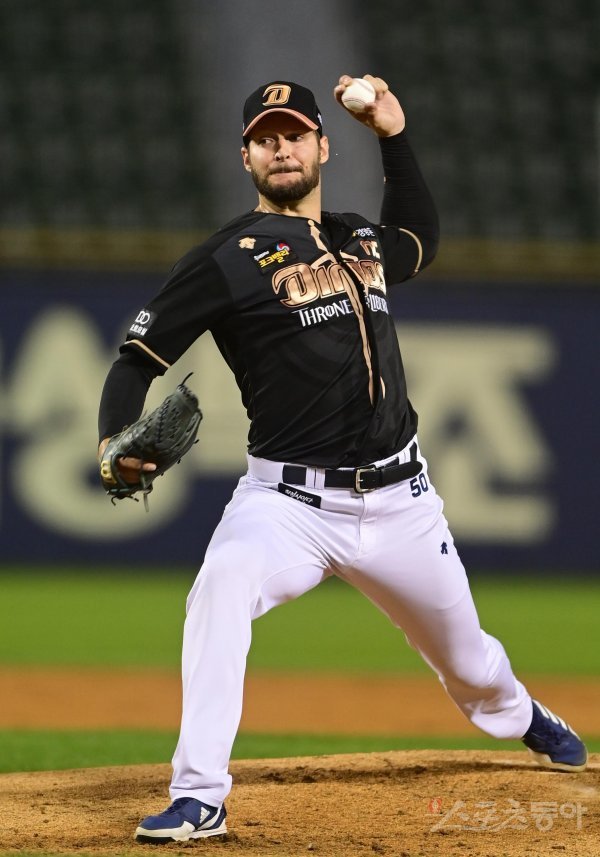 20일 서울 잠실야구장에서 열린 ‘2022 신한은행 SOL KBO리그’ 두산 베어스와 NC 다이노스의 경기에서 선발 투수로 마운드에 오른 NC 더모디가 역투하고 있다.