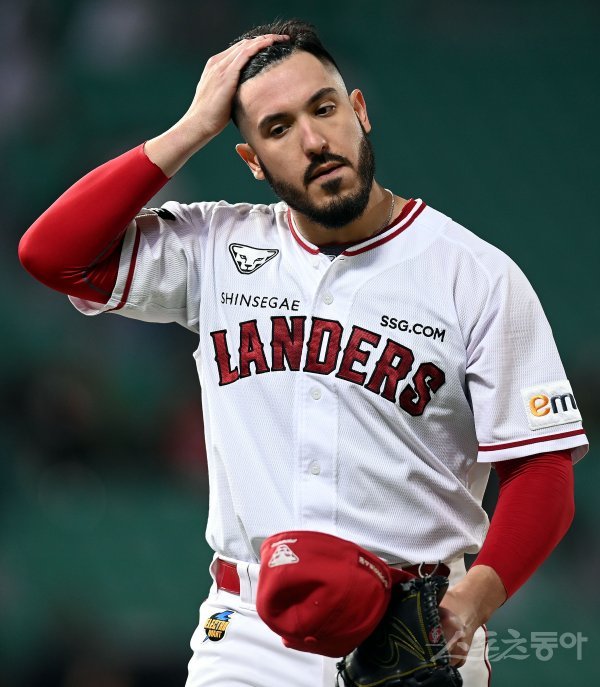 20일 인천 SSG 랜더스필드에서 ‘2022 신한은행 SOL KBO리그’ SSG 랜더스와 kt 위즈의 경기가 열렸다. SSG 선발투수 모리만도가 6회까지 1실점으로 막은 후 더그아웃으로 향하고 있다.