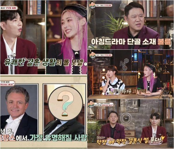 우선 김구라는 ‘상상 그 이상! 부부의 세계’란 주제에 걸맞게, 홍현희와 결혼한 제이쓴에게 “요즘 MZ 세대들이 가장 주목하는 부부”라고 덕담을 건넨다. 이에 이진은 “요즘은 친구 같은 부부가 대세”라며 “나중에 두 분처럼 재미있게 결혼 생활하고 싶다”고 제이쓴-홍현희 부부를 롤모델로 꼽는다.