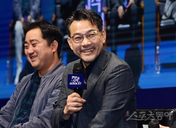 배우 정진영이 21일 서울 중구 소공동 웨스틴조선 서울에서 열린 디즈니플러스 시리즈 ‘변론을 시작하겠습니다’ 제작발표회에서 진행자의 질문에 답하고 있다.