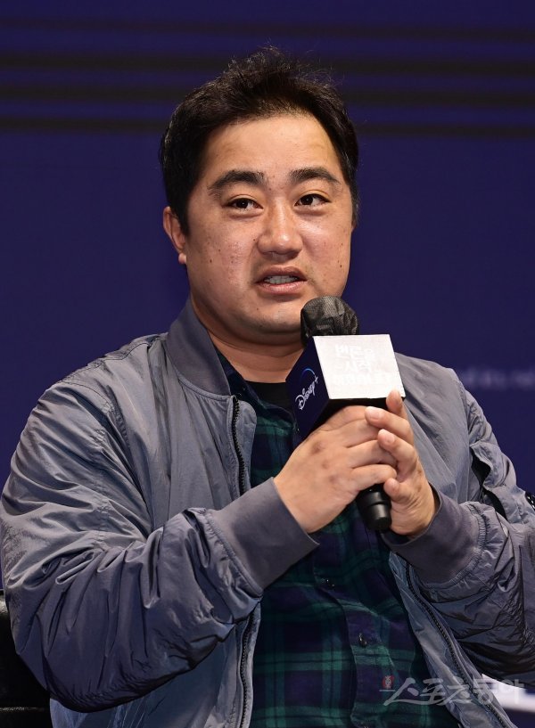 강민구 PD가 21일 서울 중구 소공동 웨스틴조선 서울에서 열린 디즈니플러스 시리즈 ‘변론을 시작하겠습니다’ 제작발표회에서 인사말을 하고 있다.