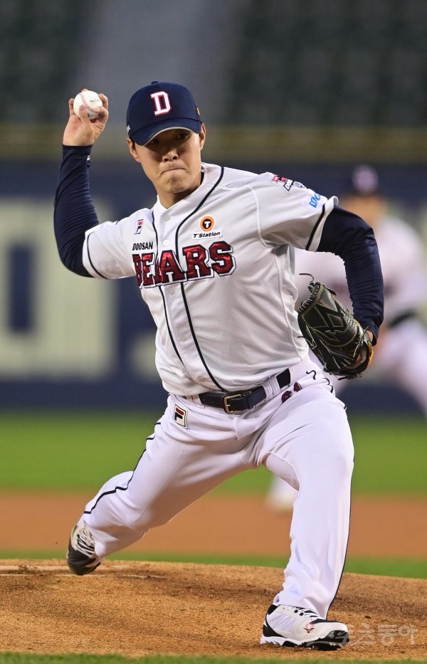 21일 서울 잠실야구장에서 열린 ‘2022 신한은행 SOL KBO리그’ 두산 베어스와 NC 다이노스의 경기에서 선발 투수로 마운드에 오른 두산 최원준이 역투하고 있다.