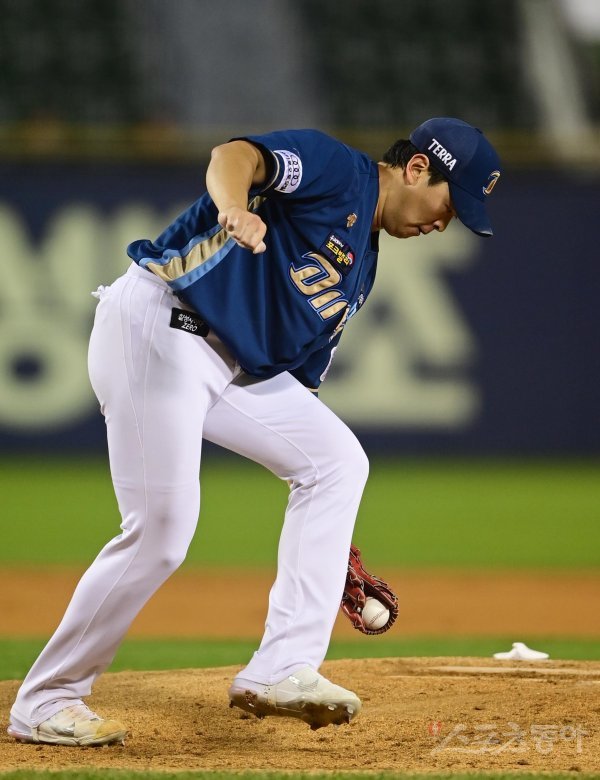 21일 서울 잠실야구장에서 열린 ‘2022 신한은행 SOL KBO리그’ 두산 베어스와 NC 다이노스의 경기에서 1회말 무사 두산의 내야 땅볼을 NC 송명기가 잡고 있다.