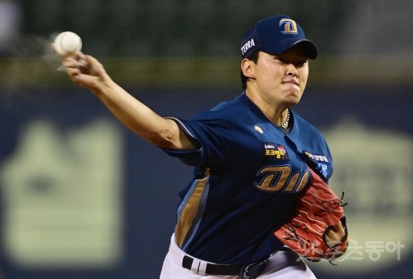 21일 서울 잠실야구장에서 열린 ‘2022 신한은행 SOL KBO리그’ 두산 베어스와 NC 다이노스의 경기에서 선발 투수로 마운드에 오른 NC 송명기가 역투하고 있다.