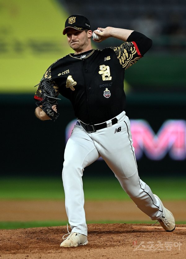 21일 인천 SSG 랜더스필드에서 ‘2022 신한은행 SOL KBO리그’ SSG 랜더스와 kt 위즈의 경기가 열렸다. kt 선발투수 벤자민이 힘차게 볼을 던지고 있다.