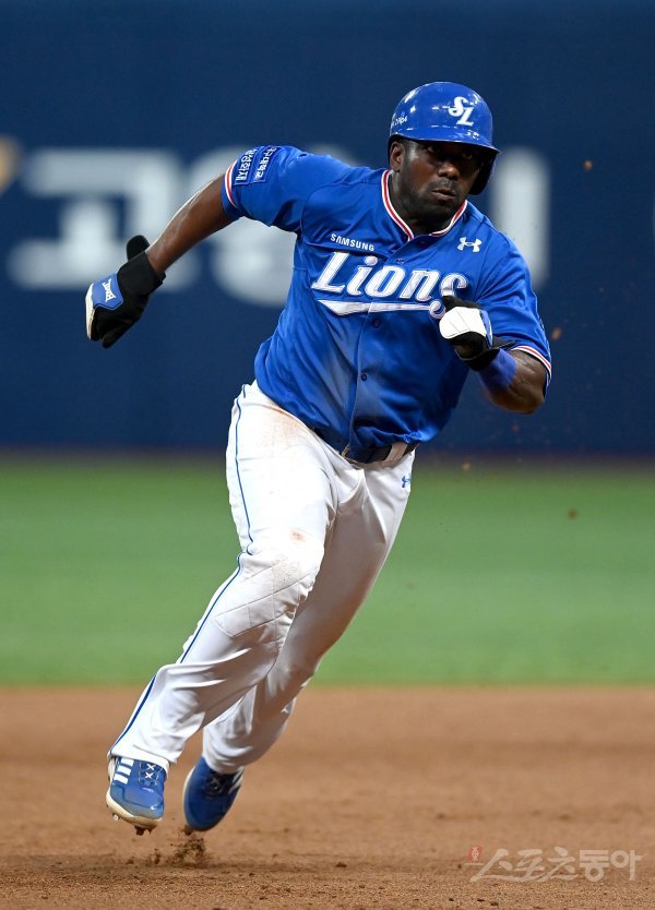 21일 서울 고척스카이돔에서 ‘2022 신한은행 MY CAR KBO리그’ 삼성 라이온즈와 키움 히어로즈 경기가 열렸다. 5회초 1사 1루 삼성 우전 안타 때 1루주자 피렐라가 3루로 달리고 있다.