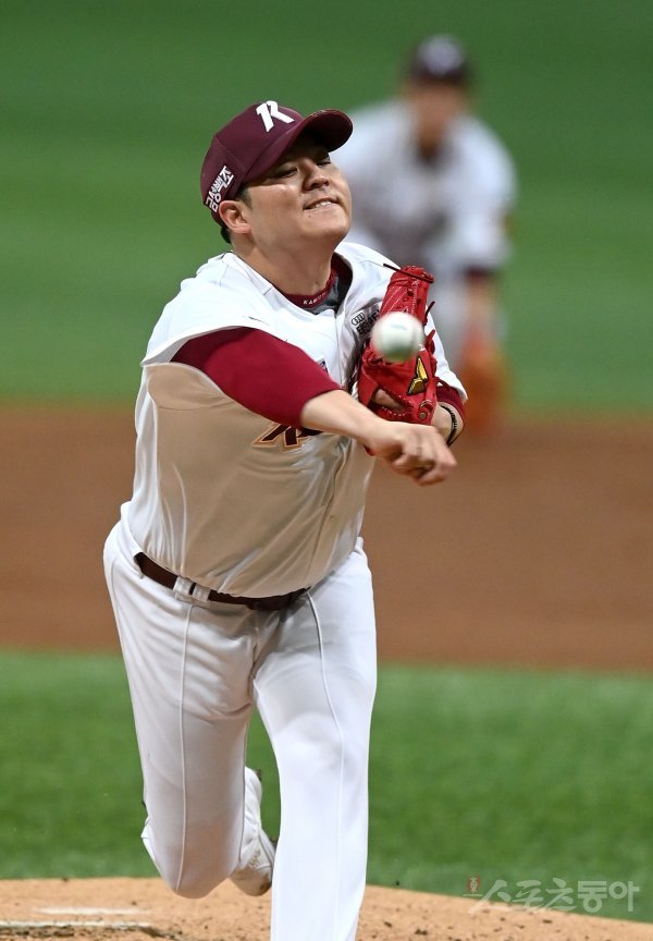 21일 서울 고척스카이돔에서 ‘2022 신한은행 MY CAR KBO리그’ 삼성 라이온즈와 키움 히어로즈 경기가 열렸다. 선발 투수로 등판한 키움 한현희가 역투하고 있다.