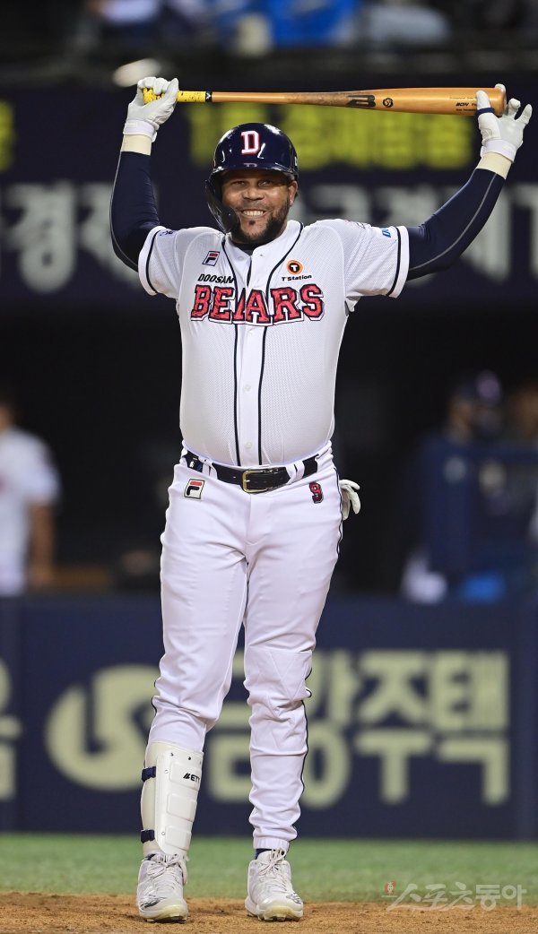 21일 서울 잠실야구장에서 열린 ‘2022 신한은행 SOL KBO리그’ 두산 베어스와 NC 다이노스의 경기에서 9회말 1사 2루 두산 페르난데스가 타석에 오르고 있다.
